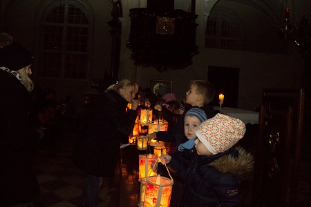sangen die Kinder am Beginn des Martinsfestes in der Dreifaltigkeitskirche.'