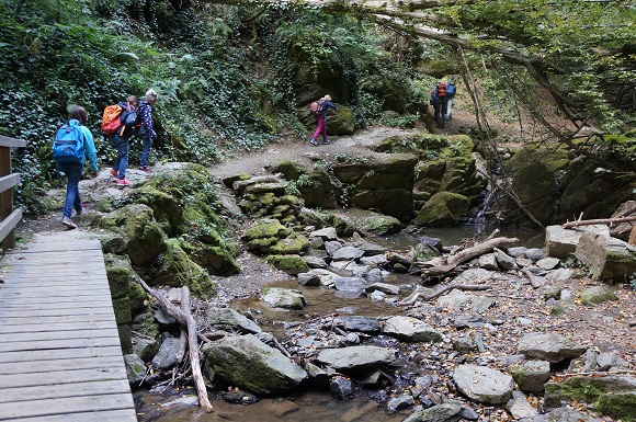 Viel Spaß machte den Kindern der Weg durch die schmale Schlucht der