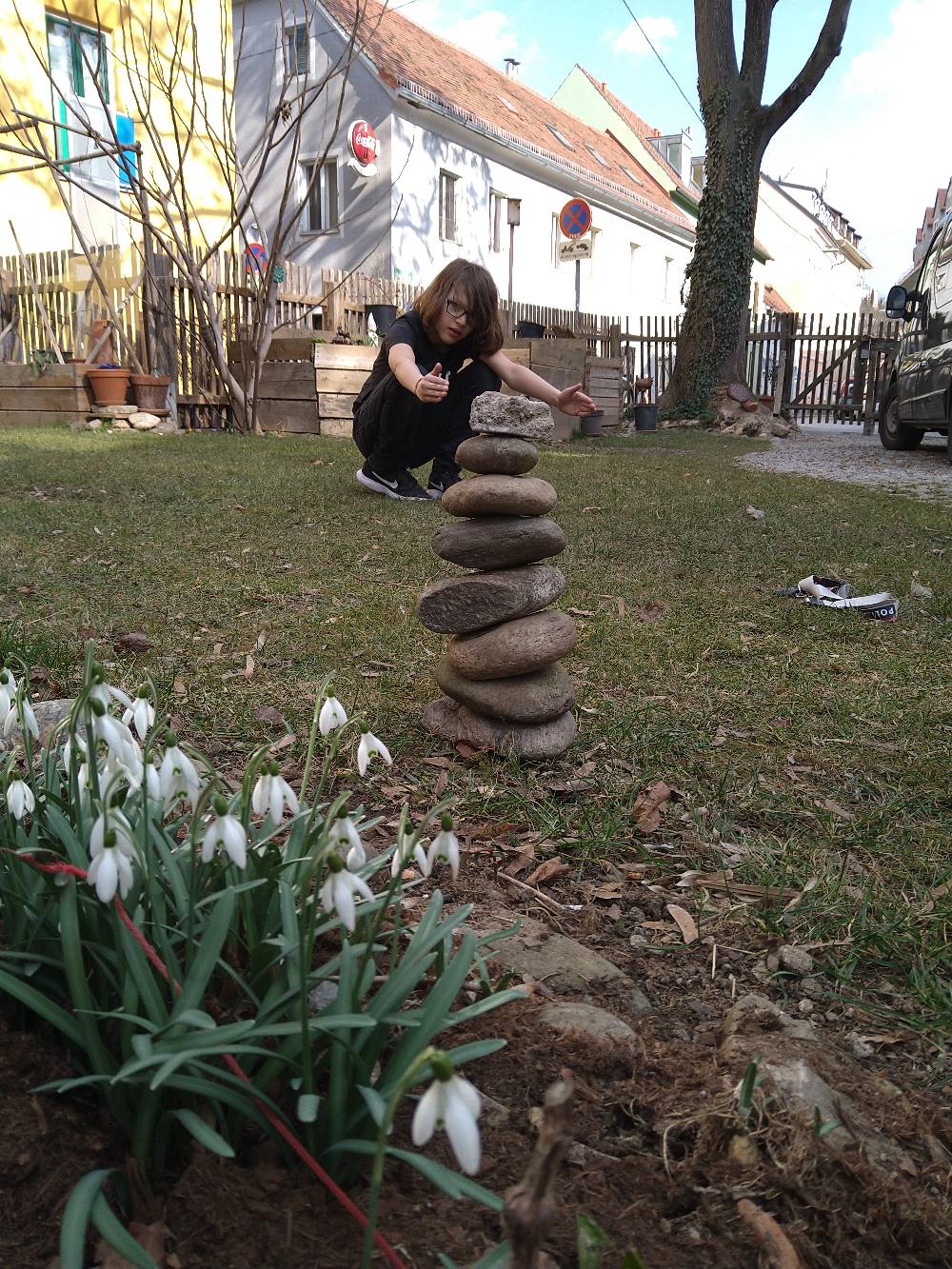 They have balanced stones in exciting places which wasn't as easy as anyone thought! They are now in the middle of their second challenge which is focused around experiments.