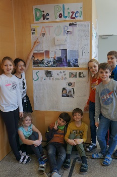 Dieses Schuljahr beschäftigte sich die 3a Klasse im 1. Halbjahr intensiv mit einem spannenden Projekt rund um die Aufgabenbereiche der Einsatzkräfte Feuerwehr, Polizei und Rettung. Den Startschuss setzten die bis zum Rand gefüllten Bücherboxen der Stadtbibliothek, die die Kinder mit großer Begeisterung in unserer Klasse in Empfang nahmen. Über hundert Bücher warteten darauf, von den Kindern durchgeschmökert und regelrecht verschlungen zu werden. Mit Hilfe einer Wissenskartei zum Thema Feuerwehr konnten sich die Kinder in Interessensbereiche ihrer Wahl vertiefen und es entstanden großartige Projektbücher. Wir staunten beim Lehrausgang zur Berufsfeuerwehr am Lendplatz über die verschiedenen Einsatzfahrzeuge, die Trainingsräumlichkeiten und die Ausbildung der Feuerwehr. Natürlich wollte jedes Kind die Ausrüstung eines Feuerwehrmannes anprobieren und einmal in einem Feuerwehrauto sitzen. Zum Thema Polizei wurden Projektteams innerhalb der Klasse gebildet, die sich selbst ein Spezialgebiet für eine Präsentation wählten. Bemerkenswerte Plakate und Inhalte wurden ausgearbeitet und selbstbewusst vor der Klasse vorgestellt. Lange in Erinnerung blieb der Ausflug zum Stützpunkt der Landespolizeidirektion, bei dem wir viel Wissenswertes erfuhren.