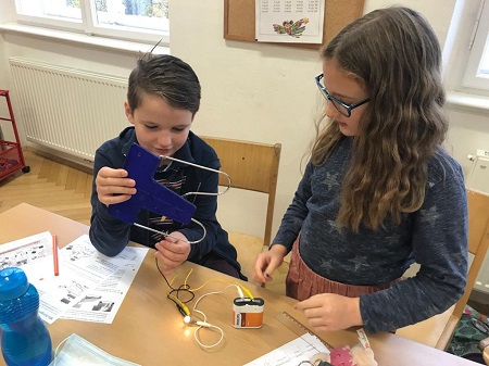 Die Hauptfrage war: „Wann leuchtet das Lämpchen und wann leuchtet es nicht?“ Bei verschiedenen Experimenten wurde ausprobiert, welche Gegenstände den Strom leiten und wann ein Stromkreis geschlossen ist. Dann ging es ans Werken: wir bauten unser eigenes Geschicklichkeitsspiel. Eine Rennstrecke aus einem Aluminiumdraht, die von einem Drahtring am Griff nicht berührt werden darf. Jede Berührung der Drähte wird durch das Aufleuchten des Lämpchens angezeigt. Alle wurden also quasi zu Rennfahrern und Rennfahrerinnen und am Ende des Projektes waren alle Sieger!