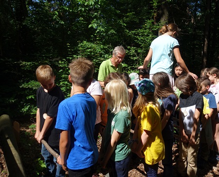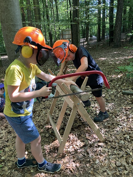 Die Kinder bauten eine „Holz-Schatzkiste“, sammelten begeistert „Waldschätze“, legten mit Naturmaterialien ein „Waldmandala“, gestalteten ein „Waldkunstwerk“, spielten Tierrätsel-Spiele, mussten Bäume blind wiedererkennen, überquerten einen Graben mittels Slackline und versuchten sich auch als Waldarbeiter.